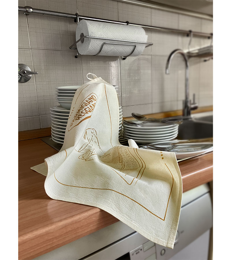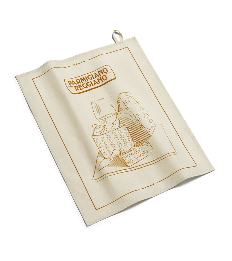 Canovaccio in cotone naturale leggero 100% con stampa Parmigiano Reggiano su un lato.