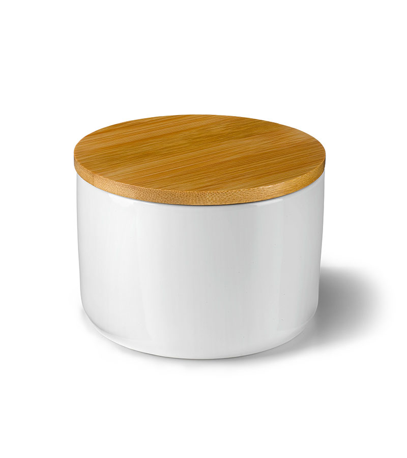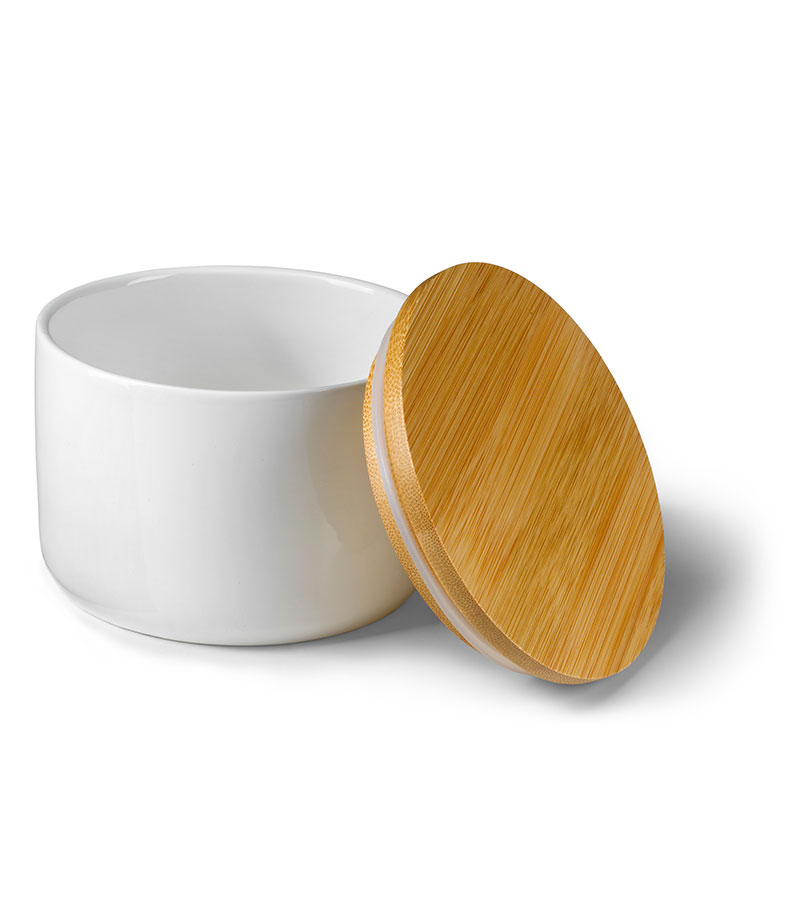 Porta un tocco di eleganza naturale sulla tua tavola con la formaggiera in porcellana bianca con coperchio in bamboo.
