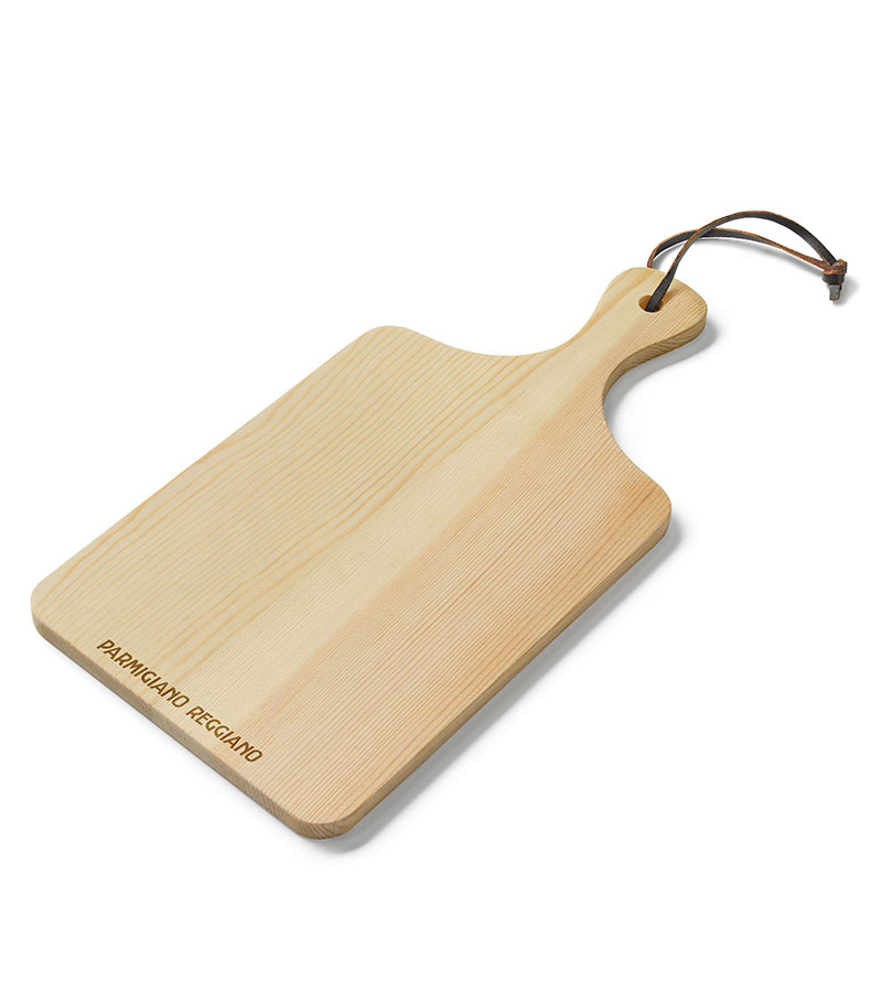 L’incisione del logo Parmigiano Reggiano valorizza il tagliere, conferendo prestigio e autenticità al prodotto, rendendolo adatto anche per confezioni regalo o esposizioni.